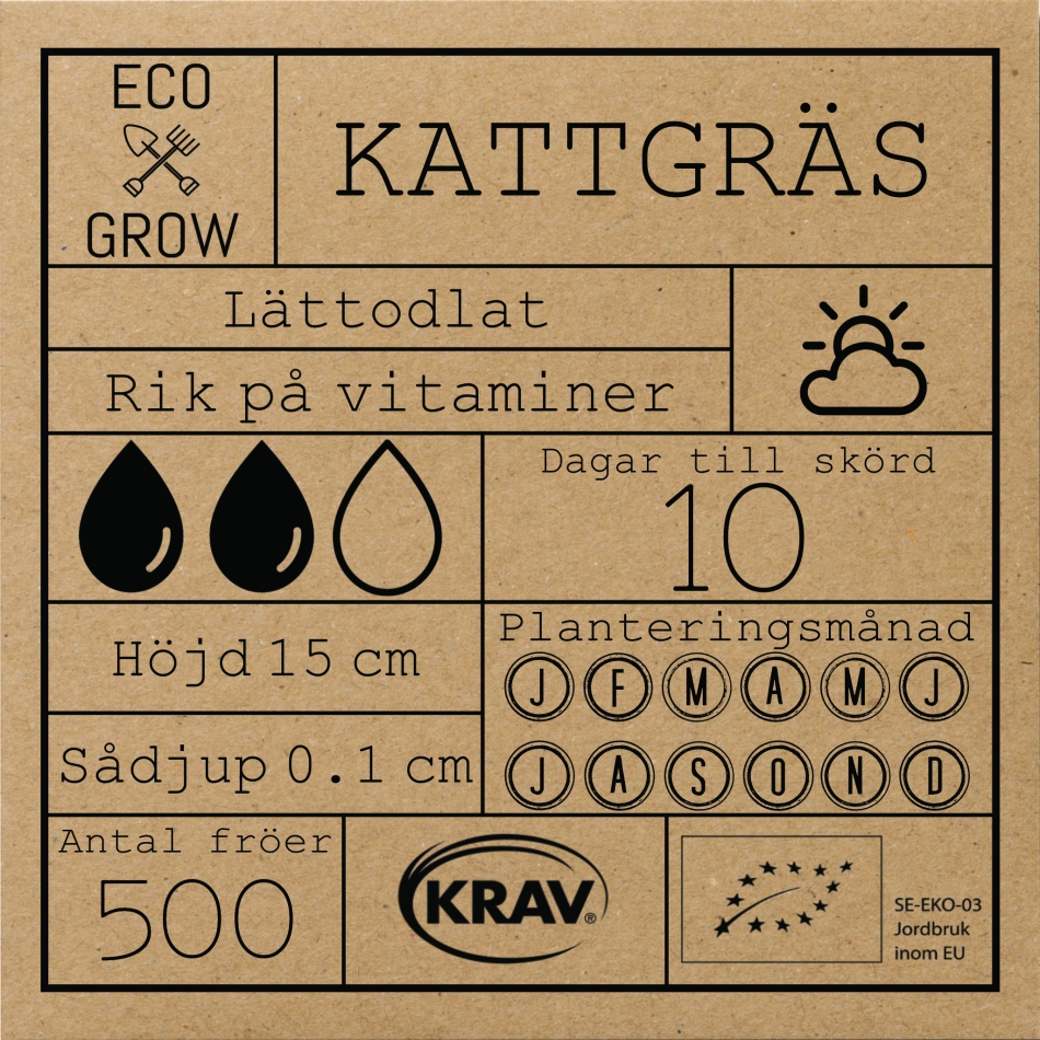 Är lättodlat och växer snabbt inomhus året runt. Det är rikt på vitaminer och mineraler som främjar kattens matsmältning och motverkar hårbollar. Perfekt för innekatter, särskilt vintertid. Fungerar även bra som gröngödslingsväxt.