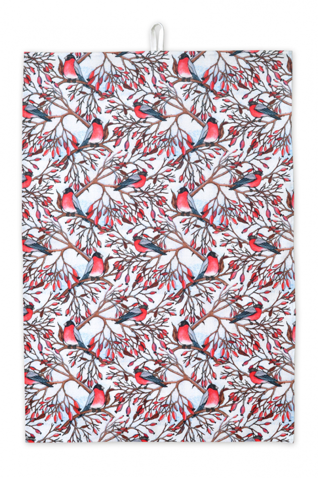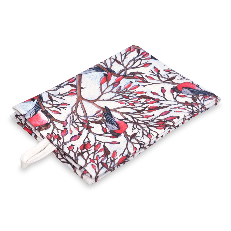 Kökshandduk i bomull/lin och handritat mönster Nyponherrar.