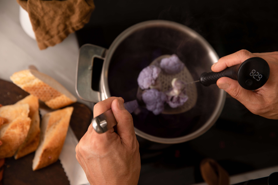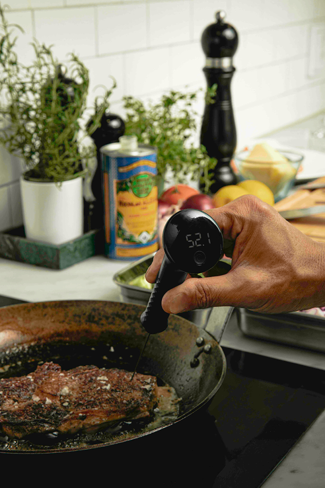 Vår kökstermometer har utvecklats i samarbete med professionella kockar och framstående formgivare. Projektet tog över 3 år och involverade arbetsgrupper i minst 6 länder och finansierades via Kickstarter - 633 backers och 453 000 SEK.
