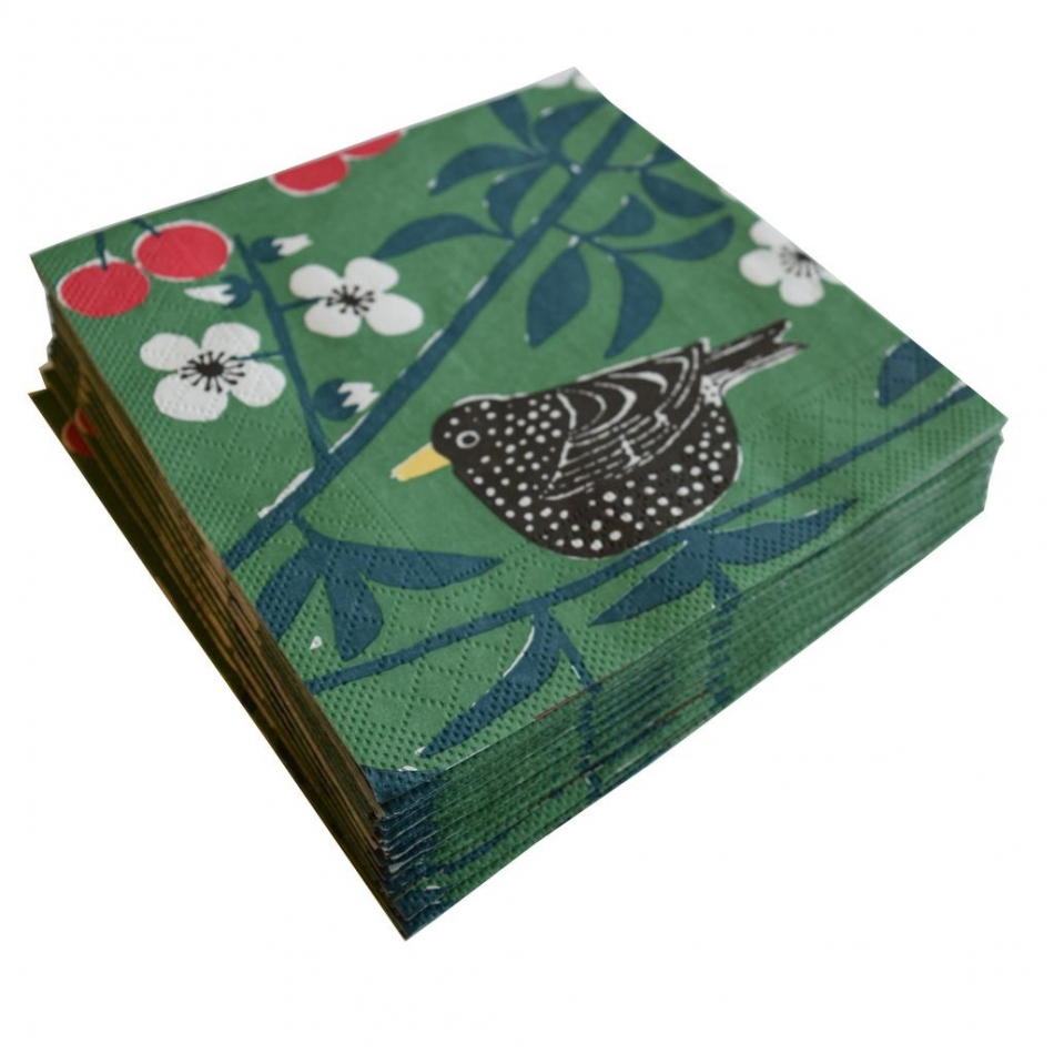Pappersservetter "Körsbärsträdgården" i grönt skapar en vacker dukning till vardag och fest