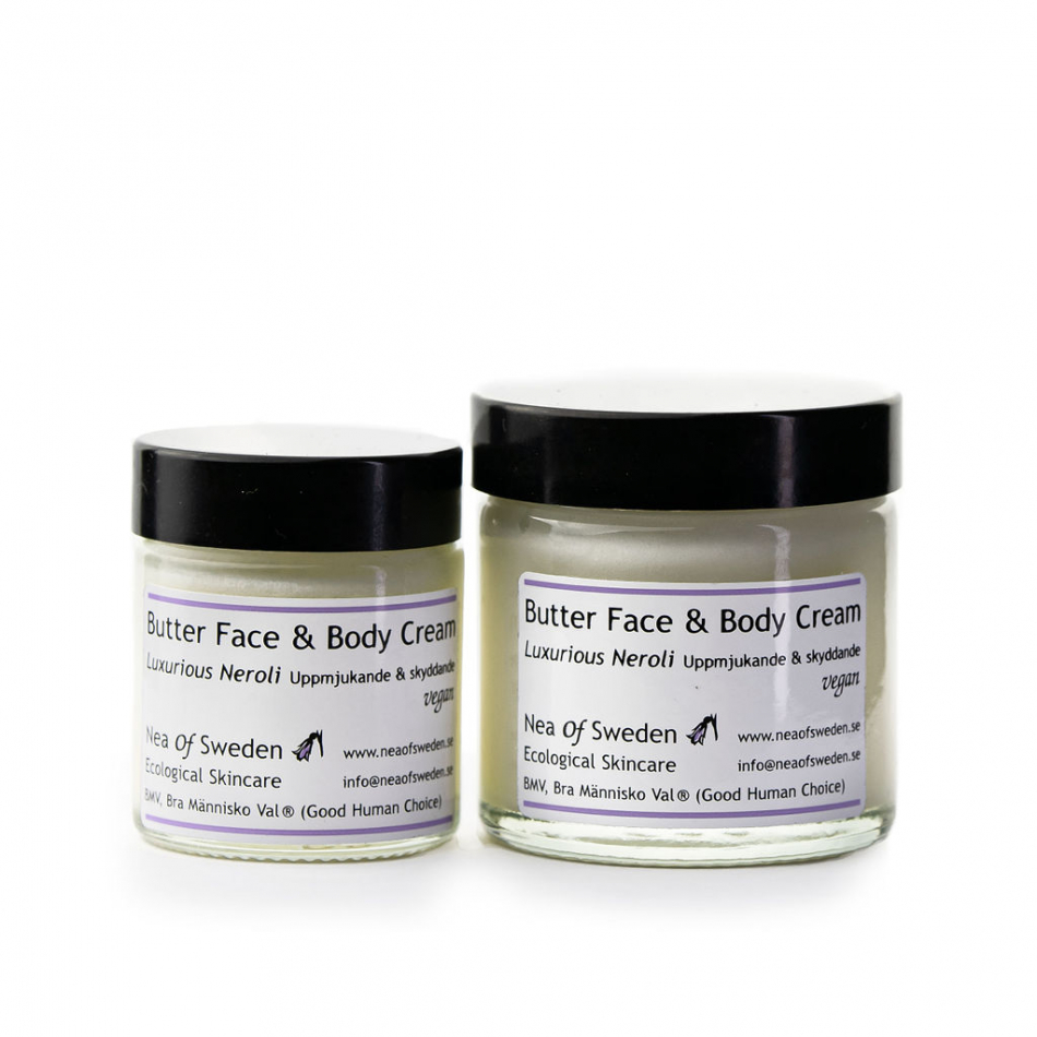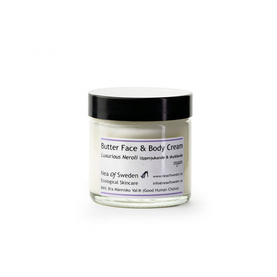 Luxurious Neroli Butter Face & Body Cream doftar lyxigt av neroli och fräsch pepparmynta.