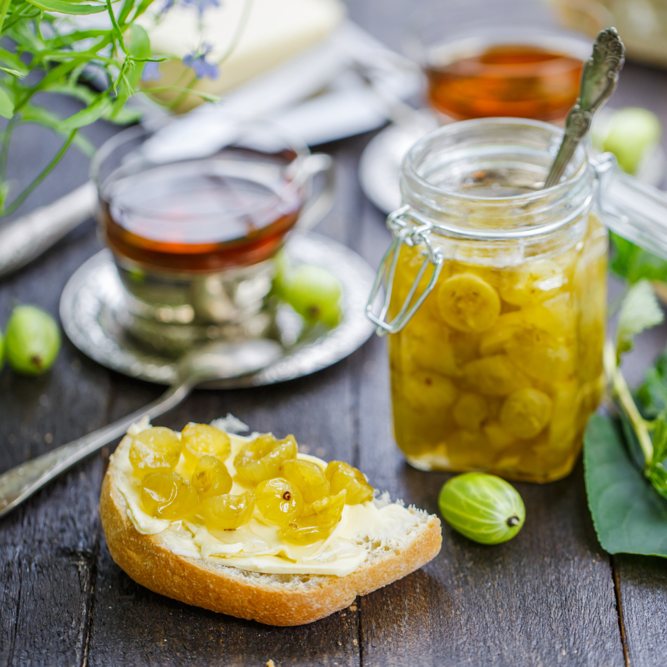 Robust krusbärsbuske. Rikligt med gröna sötsyrliga bär. Mognar i augusti. Passar till saftning, syltning och gelé. Härdig buske, motståndskraftig mot mjöldagg.