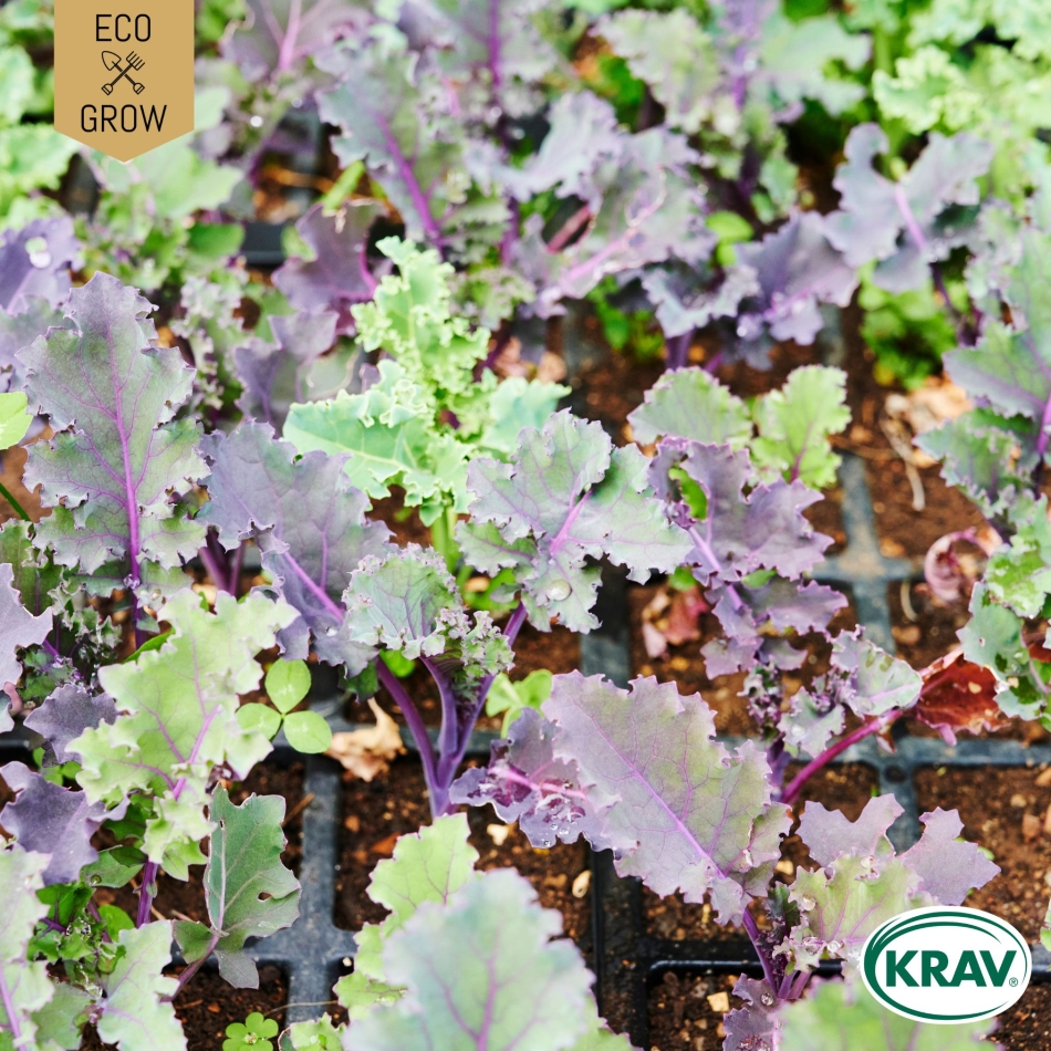 Är en härlig blandning av flera grönkålssorter i olika färger och former. Bladen varierar från ljusgröna och starkt krusade, djupt gröna och lätt buckliga till purpurfärgade krusade. Samtliga sorter är köldtåliga och kan skördas under hela hösten och in på vintermånaderna. Kan även odlas som småblad till sallader.