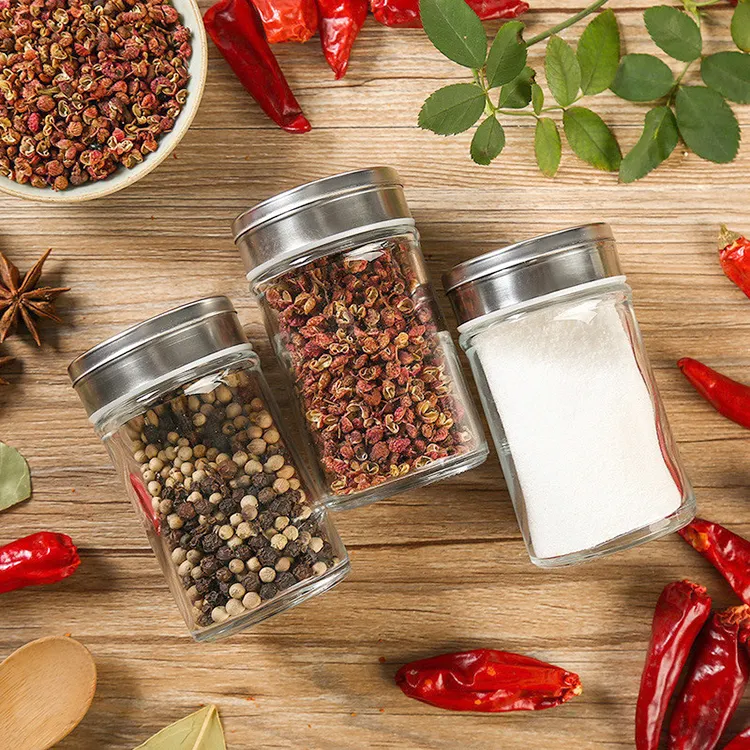 Modern och robust burk i glas med lock i rostfritt stål som har tre olika hålstorlekar. Livsmedelsgodkänd tätning ingår.