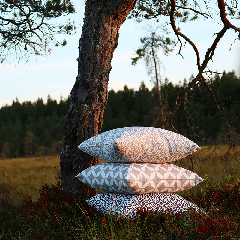 Kuddfodral med ett tryckt mönster av marrakech kakel.