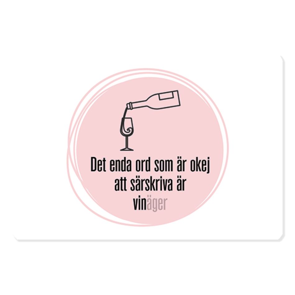 Ett favorituttryck från Sverige mot särskrivning: ”Det enda ord som är okej att särskriva är vinäger”. Ett måste på kylskåpsdörren!