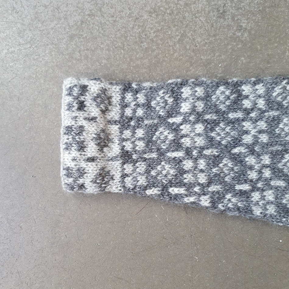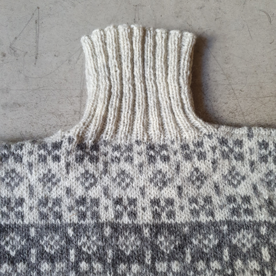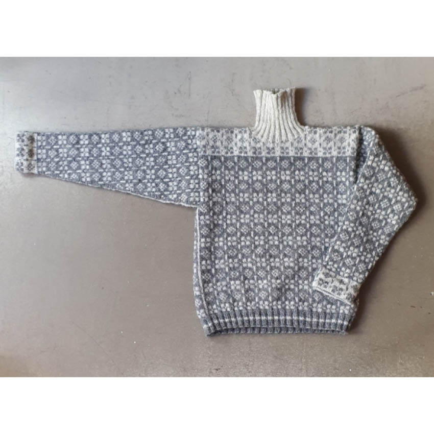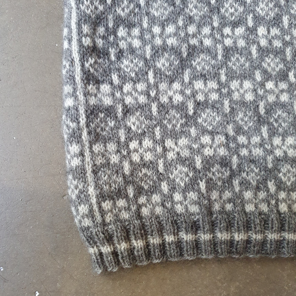 Mönstret på tröjan är ett mönster inspirerat av stickning från Färöarna. Det speciella med Färömönster är att det är småmönstrat och att det nästan känns som bårder.