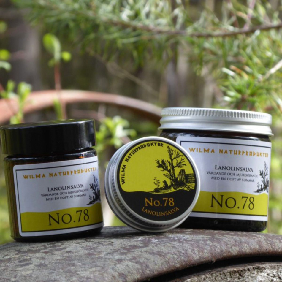 Med denna vårdande och mjukgörande Lanolinsalva så kommer du snabbt tillrätta med torr, sprucken och irriterad hud som till och ifrån drabbar oss i vår fart genom livet. Lanolin har en oöverträffad fuktgivande förmåga och bevarar huden len och mjuk. Den täcker, skyddar, bevarar fukt, mjukgör och lämpar sig för självsprickor på händer och fötter, torr hud, skärsår, skrubbsår, listan kan göras hur lång som helst, samtidigt som den låter huden andas. Vår Lanolinsalva innehåller enbart 95,5% lanolin och 0,5% eterisk olja så därför så känns vår salva kladdigare än de flesta andra vanliga hudsalvor. Men det är just därför som denna är så fantastisk! Ofta så hittar man tyvärr salvor av liknande typ som innehåller någon billig vegetabilisk olja eller i värre fall vaselin. Vaselin är enbart billig utfyllnad och då den är en petroliumprodukt så har den absolut inget på huden att göra. Något sådant hör inte hemma i denna salva utan ju mer lanolin desto bättre… kladdig och helt underbar! Denna salva innehåller förutom vattenfritt lanolin också en liten mängd eteriska oljor som är de naturliga, aromatiska, flyktiga vätskor som återfinns i buskar, blommor, träd, rötter och frön, kända som naturens levande energi. Eteriska oljor har ofta en behaglig doft och deras kemiska sammansättning är komplex och deras gynnsamma egenskaper omfattande – vilket gör dem till något mycket mer än något som bara luktar gott. Wilmas Lanolinsalva har givetvis genomgått full kvalitetssäkring med säkerhetsbedömning och sammanställning av säkerhetsrapport enligt EU:s kosmetikaförordning. Vår lanolinsalva är också såklart produktanmäld hos EU:s kosmetikaregister CPNP.
