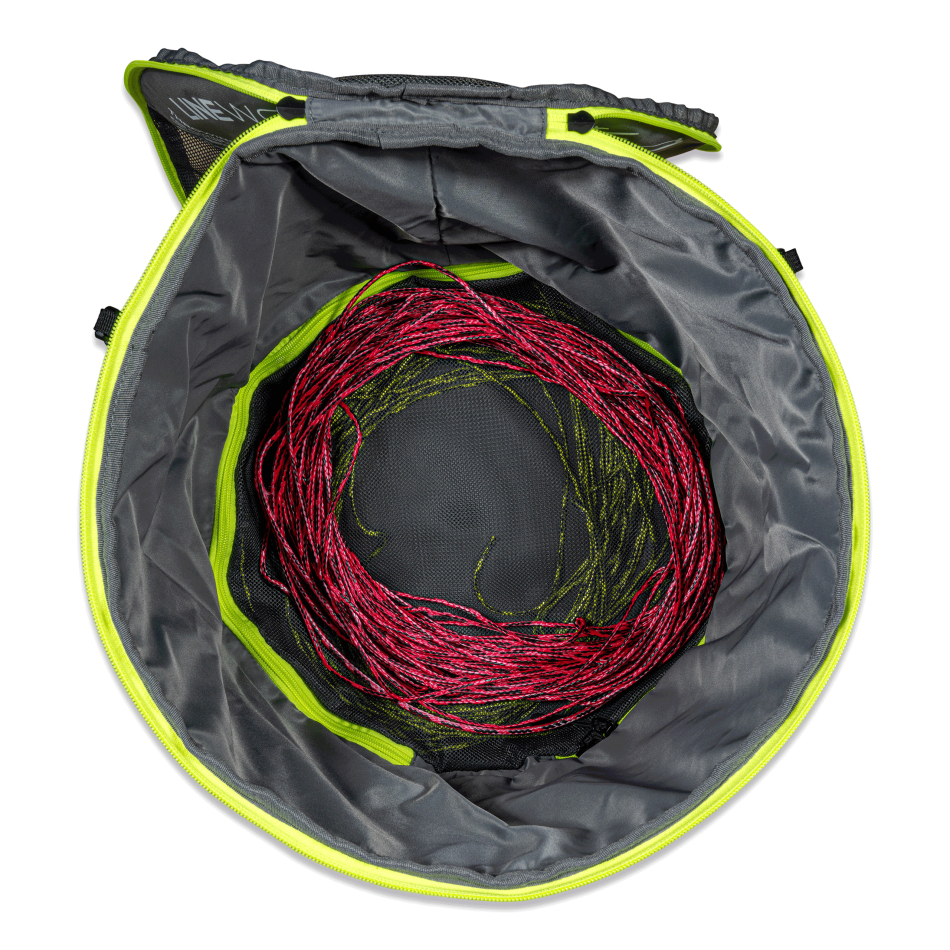 För smidig förvaring och transport kommer Lineworker i en kompakt, hopfällbar väska. Under kastmomentet matas repet ut jämnt från väskan, vilket minimerar risken för att det trasslar in sig eller fastnar i grenar och sly när det placeras direkt på marken.