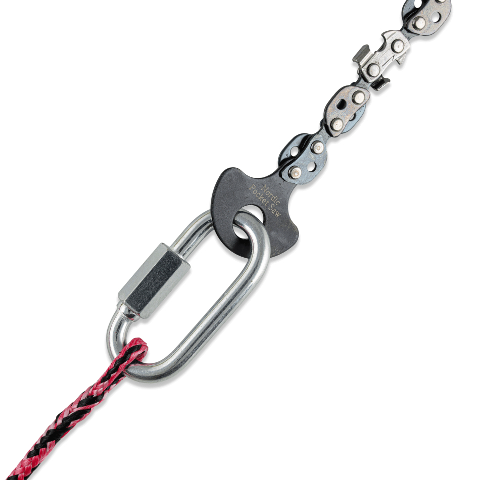 Utöver ovan nämnda delar ingår även en kastpåse, ett skyddsfodral för sågkedjan, två skruvkarbinhakar för att fästa kedjan i repen samt ett nyckelverktyg för att dra åt karbinhakarna.