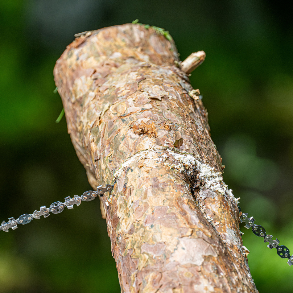 - Sågkedjan har tänder på båda sidor och är placerade så att de verkar i båda riktningar • Användbar för grenar och träd upp till 20 meter höga