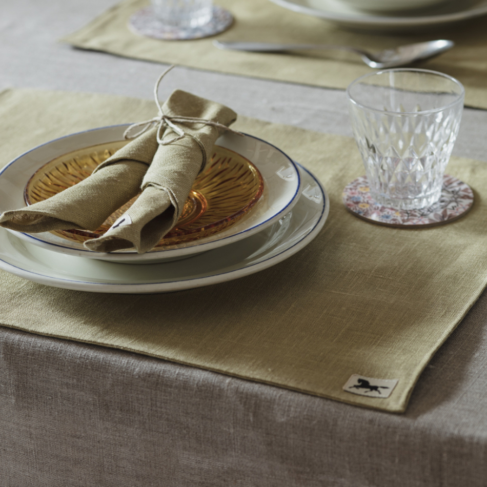 Linne, bordstablett, ljus oliv, 45x34cm (2-pack)