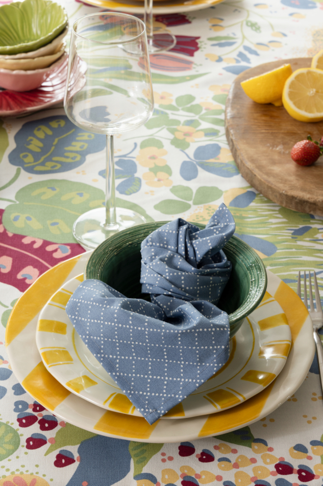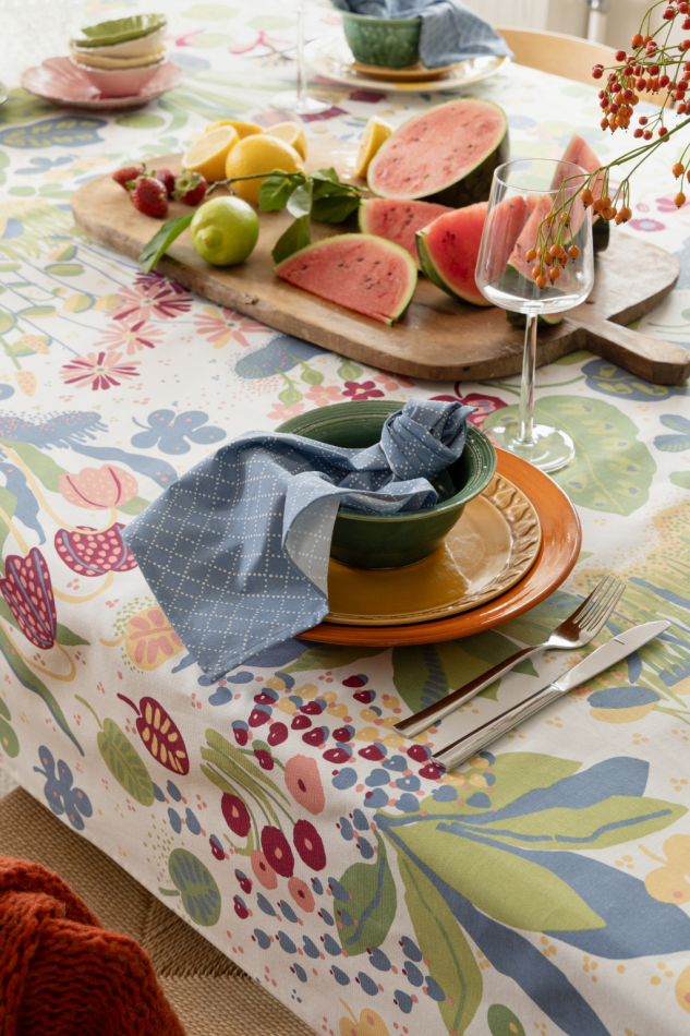 Tillverkad i 100% bomull, lätt att tvätta och håller länge. Passar utmärkt som middagsduk, vardagsduk eller inredningsdetalj i alla hem.