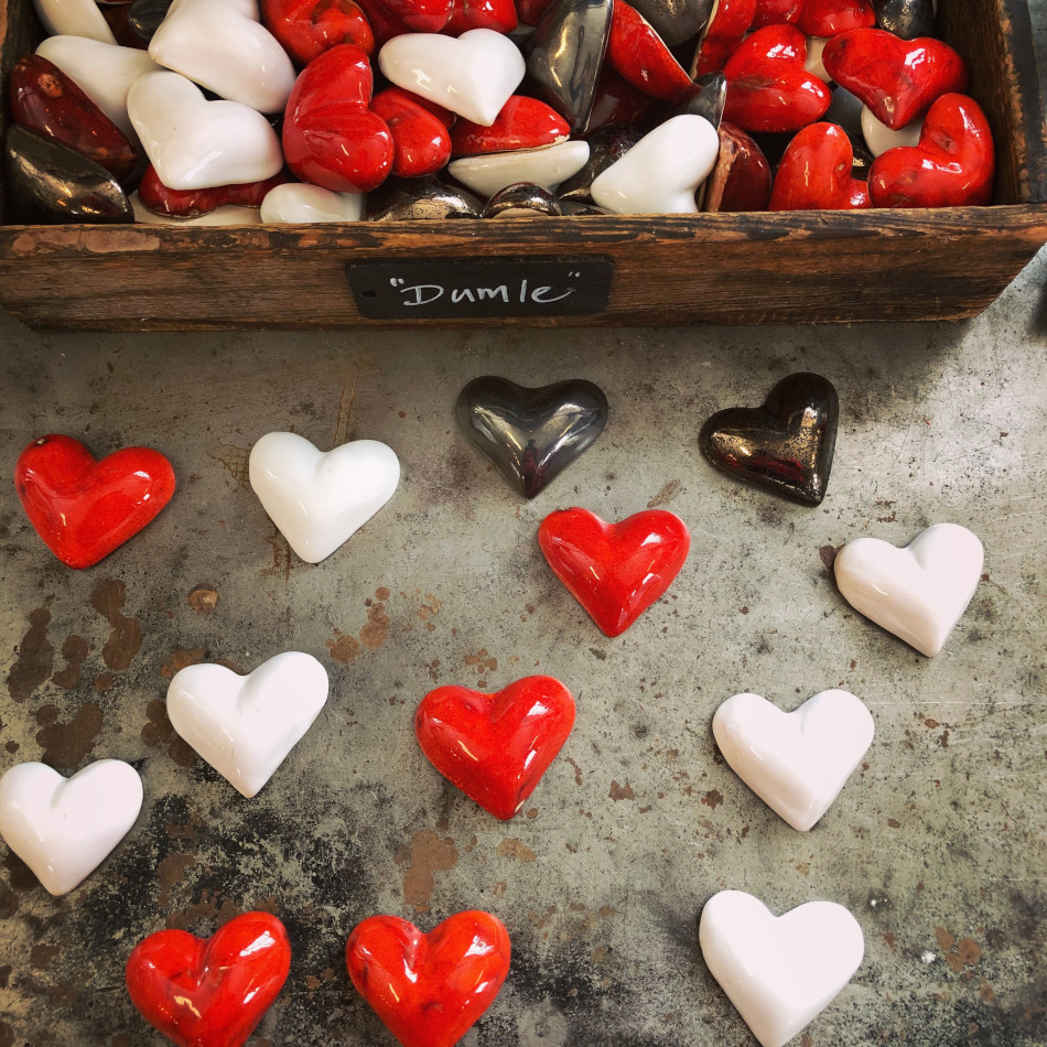 Litet handgjort hjärta i keramik. Dumlehjärtan är perfekta som presenter och fina att duka med, dekorera bord eller fönsterbrädor med. Levereras i en liten ask i papper med snöre & etikett, färdiga att ge bort som present om du önskar det.