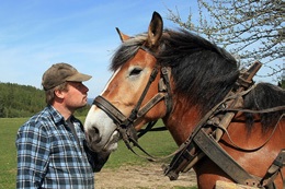Han driver sitt jordbruk på traditionellt sätt och de tre ardennerhästarna har en central roll i deras liv. Alla maskiner och redskap är av traditionell typ och mycket av arbetet utförs med handkraft. Hästarna används istället för traktorn i så väl arbetet i skogen som när det gäller vårsådd, hökörning eller höstplöjning.
