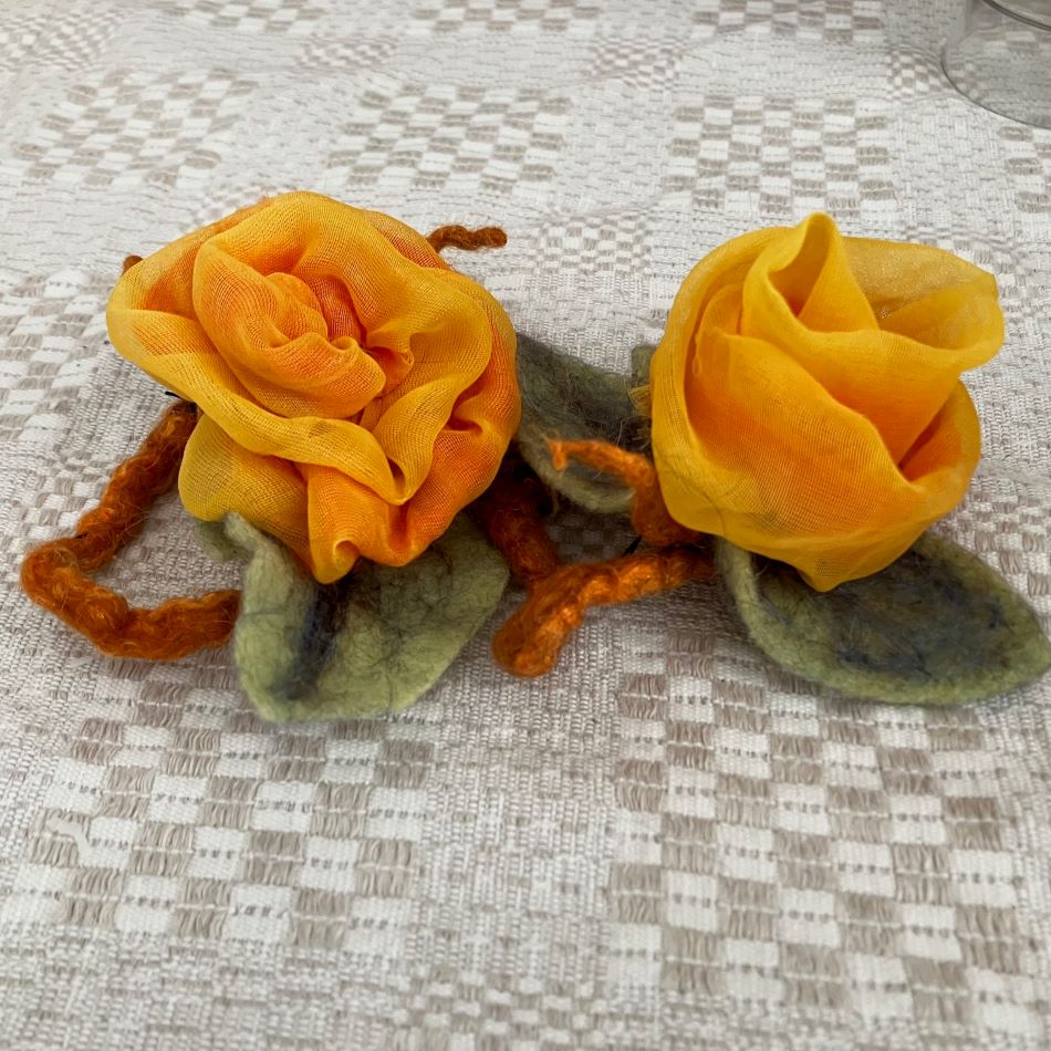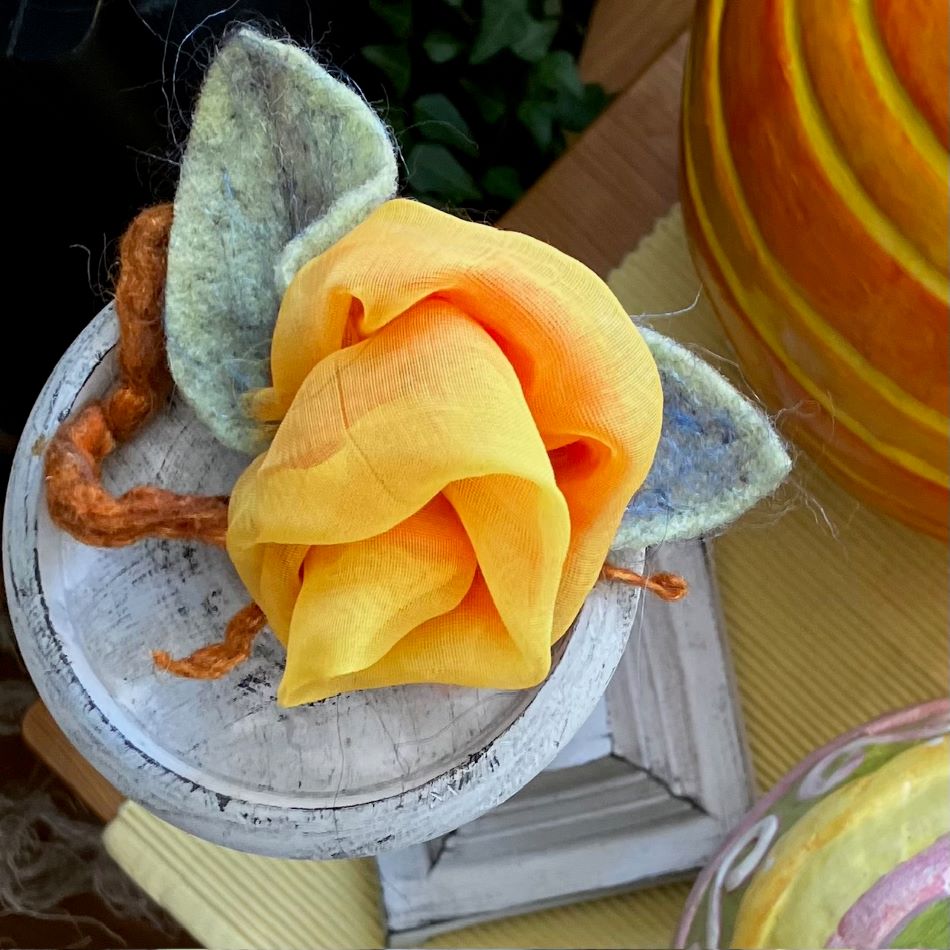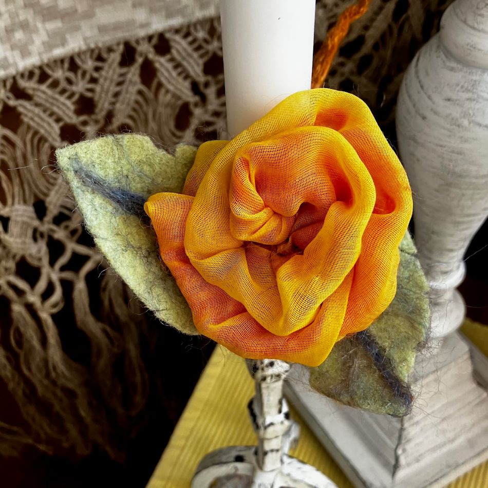 Observera att denna ljusmanschett har tyg i blomman som kan ta eld. Lämna aldrig levande ljus obevakade. Ull manschetten brinner ej men förkolnar (luktar dock illa)