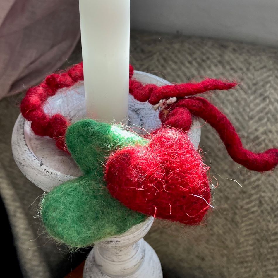Observera att denna ljusmanschett är helt igenom av ull. Lämna aldrig levande ljus obevakade. Skulle du låta ditt ljus i ljusstaken brinna ner för långt så är det inte någon fara med ullen den förkolnar, brinner inte.