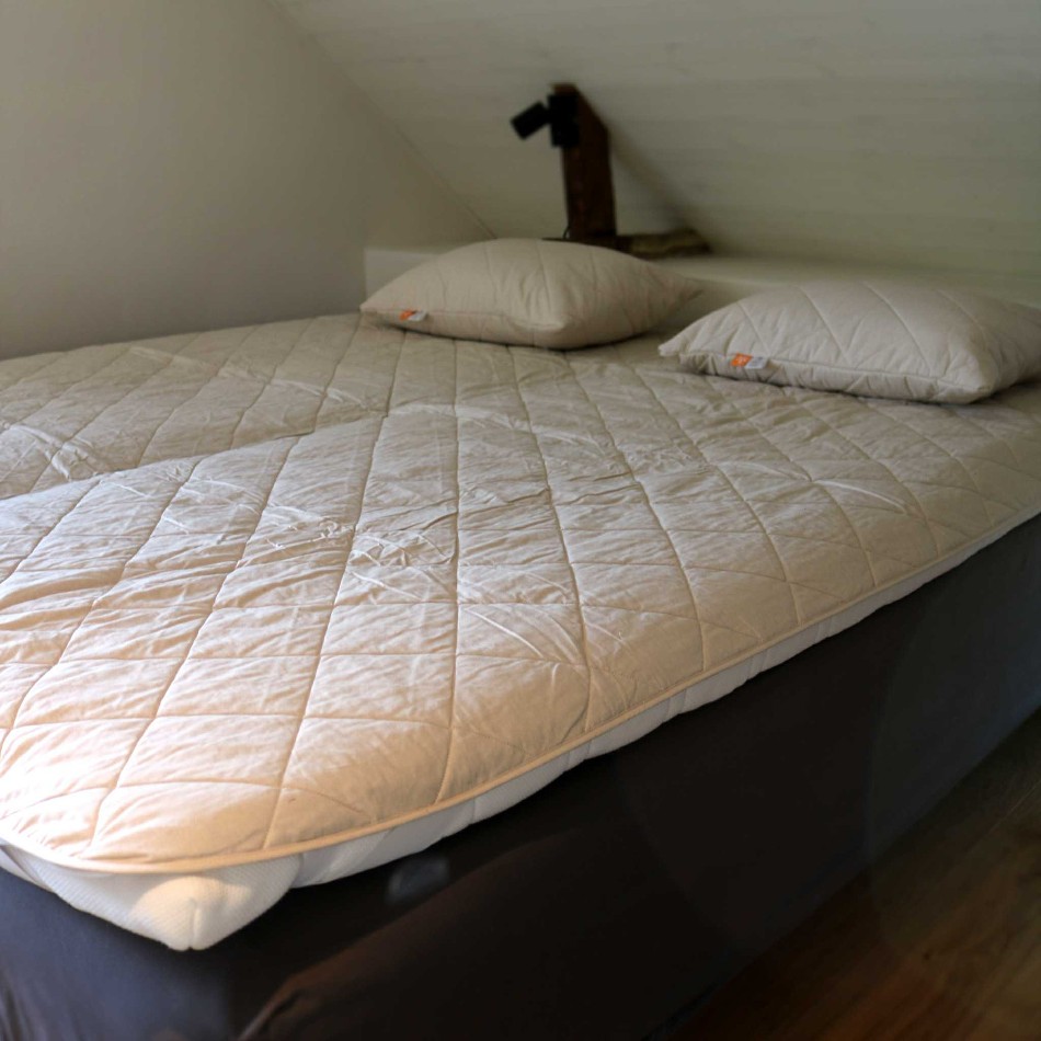 Madrasskydd med fyllning av 100 % ekologisk hampafiber. Odlad utan kemikalier och utan användning av herbicider eller bekämpningsmedel.