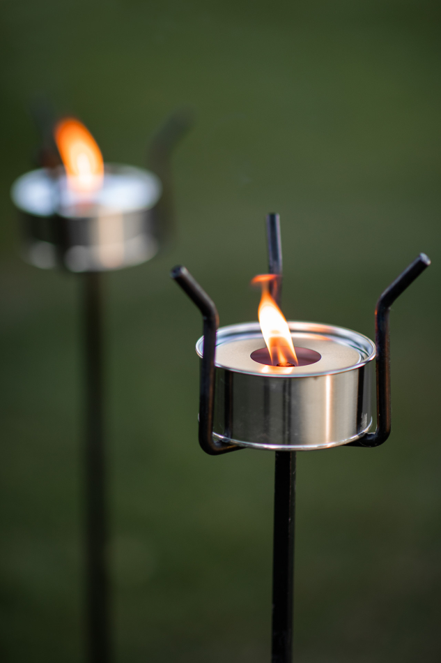 Förpackning: 12-pack med vindskyddande lock. Brinntid ca 7-8 timmar.