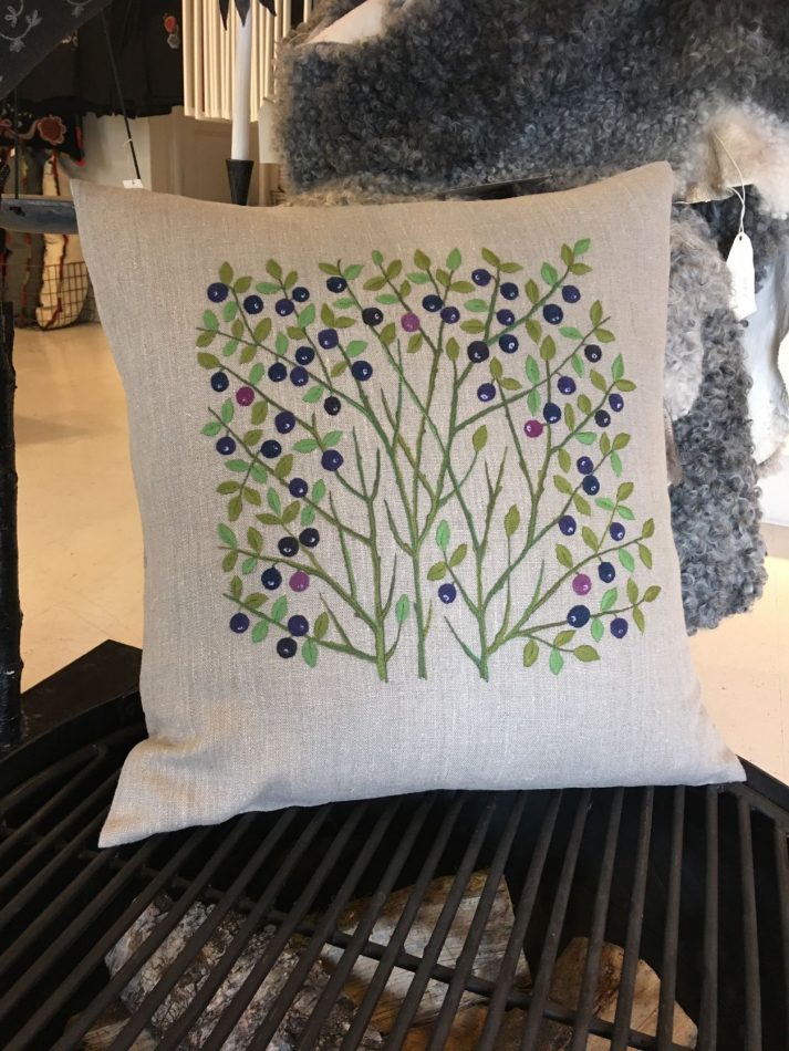 Kudden är sydd på ett tåligt linne som är vackert även när det inte är nystruket och ligger bra i en rustik miljö. Sömsätt: stjälksöm, plattsöm ovch knutar.