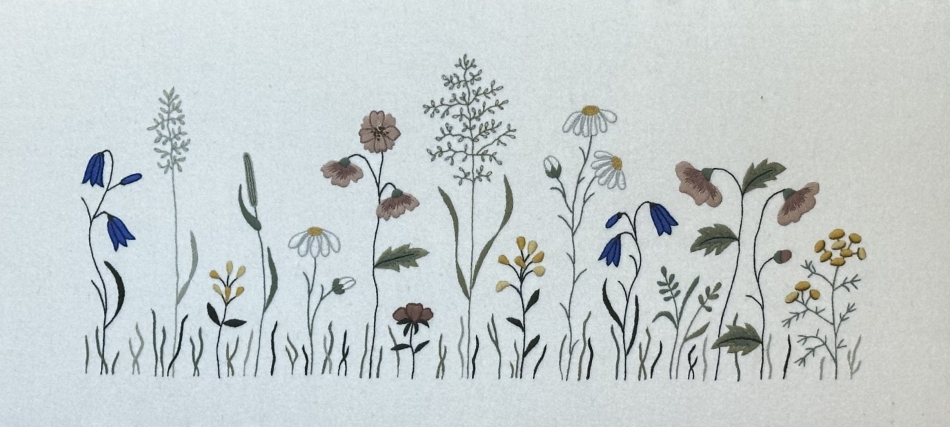 Sömsätt: stjälksöm, plattsöm, kedjesöm och knutar. Bakstycke ingår.