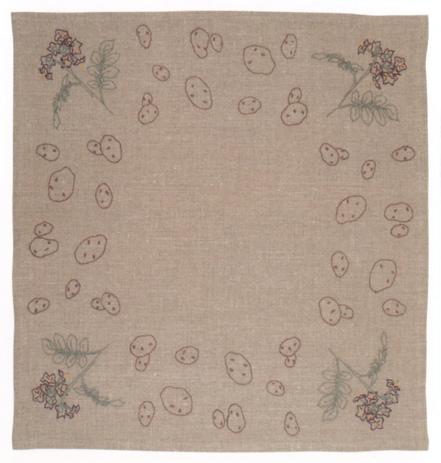 Broderad potatisduk 60x60 cm sydd på oblekt hellinne