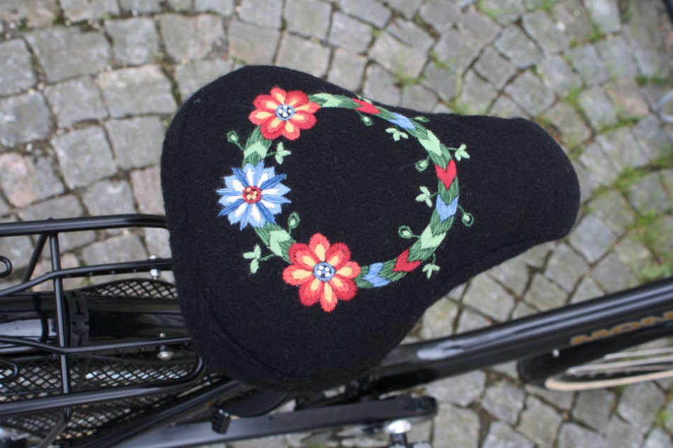 Materialsatsen innehåller allt som behövs för att färdigställa detta vackra sadelskydd: Ylletyg med påtryckt mönster, ylletrikå, vliselin, stoppning, gummiband, garn, nål samt tydlig arbetsbeskrivning.