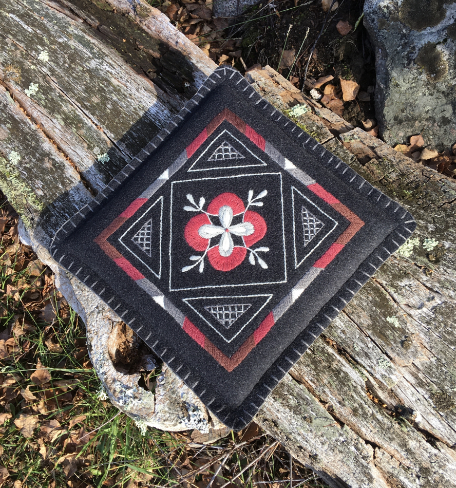 Materialsats till sittdyna 30x30 cm 100% ull. Sömsätt: stjälksöm, plattsöm, langettsöm och knutar.