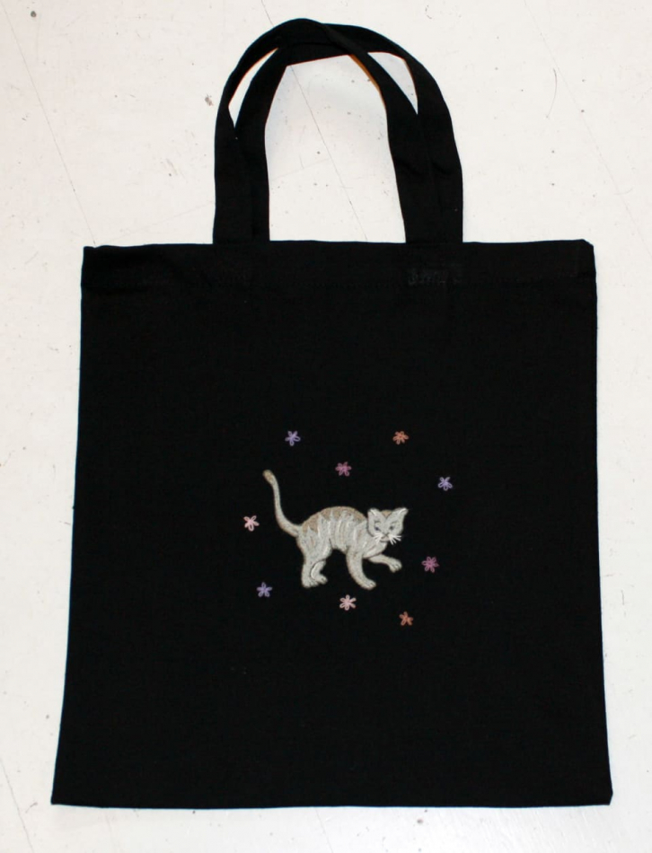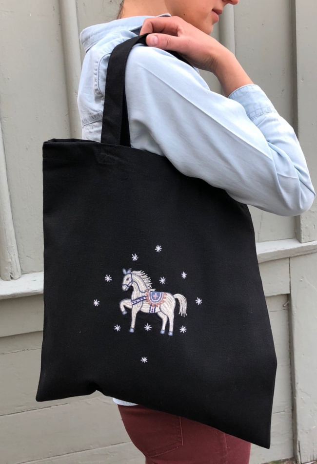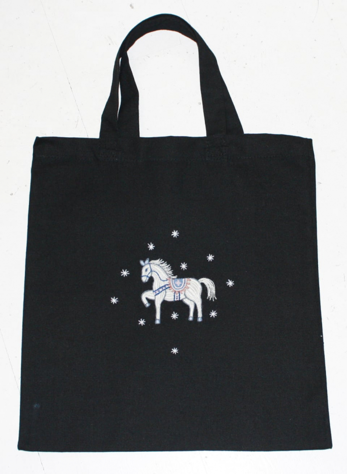 Låt fantasin flöda och restgarnerna bestämma! Brodera med restgarner av lin, mouliné, bomullsgarn eller tunn ulltråd. Kassen är sydd i en stadig kvalité av 70 % återvunnen bomull och 30% petflaskor. Tyget känns som ett kraftigt bomullstyg. I förpackningen ingår 2 st kassar, 1 st med hästmotiv+ 1 st med kattmotiv.