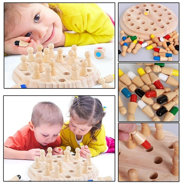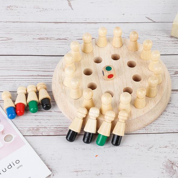Sätt ut plupparna på brädet och rulla tärningen för att se vilken färg du ska ta. Får du fel färg får du sätta tillbaka pluppen och turen går vidare. Flest pluppar vinner! Memoryspelet av trä är pedagogiskt och låter barnen utveckla sitt minne, sin tankeförmåga och sin koordination. Den fina, rustika designen gör brädspelet till en leksak ni inte behöver städa undan när lekstunden är över. Ett roligt spel för hela familjen.