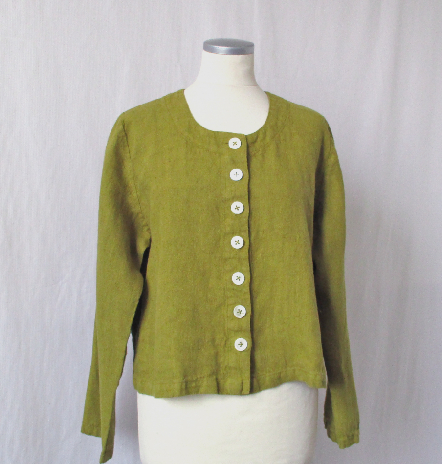 Jacka i linne med pärlemoknappar. Tvättad och handfärgad.