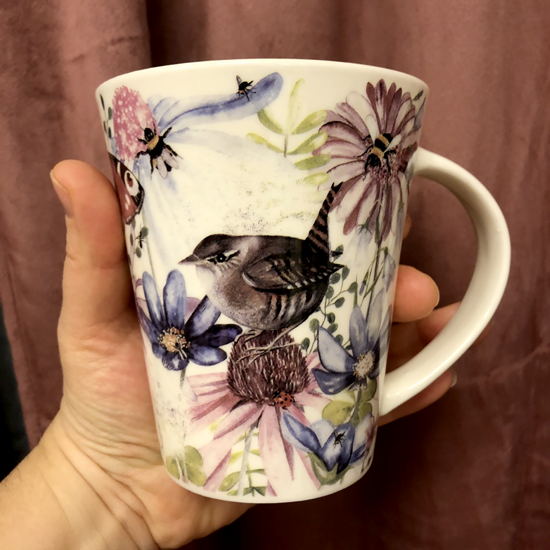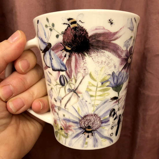 Vacker mugg med somrigt motiv och bekvämt öra.