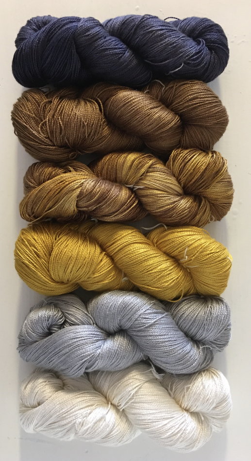 Mullbärssilke i färger inspirerade av svampskogen. Garnet är handfärgat vilket ger det ett levande och skimrande utseende. Härva om 100 gram/ 600 meter, som räcker till bl.a. en läcker tubsjal. Beskrivning medföljer.