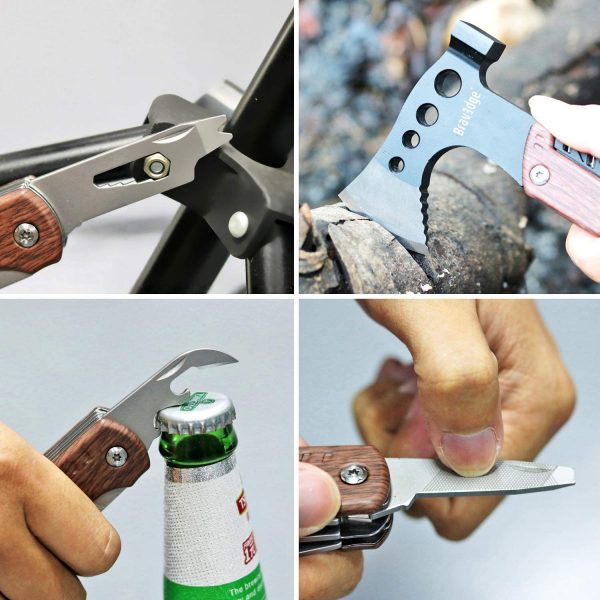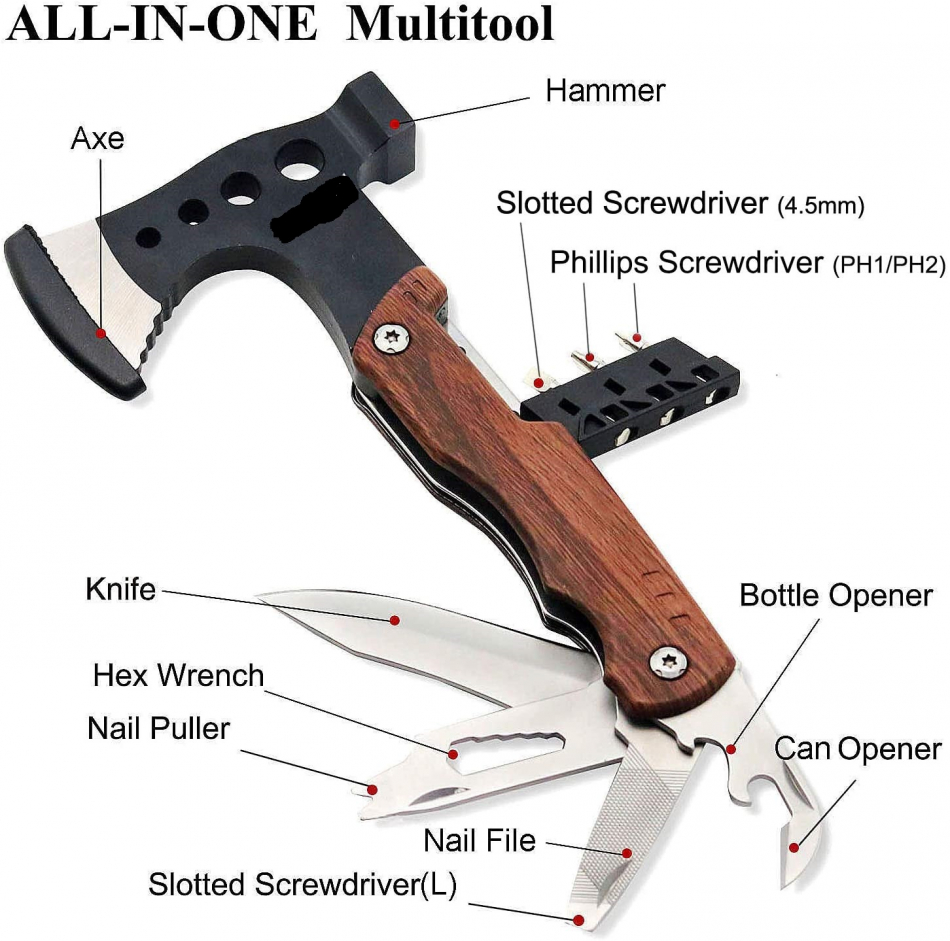 【12-i-1 multiverktyg och perfekt presentval Allt-i-ett multiverktyg inkluderar yxa, hammare, kniv, spikdragare, insexnyckel, misslyckande, flasköppnare, burköppnare, stjärnskruvmejsel och spårskruvmejsel som kan arbeta med i olika stuationer. iVårt multiverktyg är den bästa presenten till födelsedag, fars dag, jul, tacksägelsedagen.