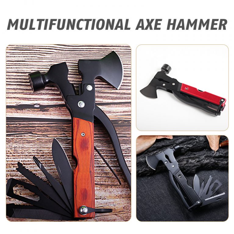En fantastisk gåva för äventyrssökare: Om du letar efter en speciell present till dina nära och kära som gillar att utforska, camping, jakt, vandring, fiske eller backpacking, så är vår Multitool Hatchet ett perfekt val!