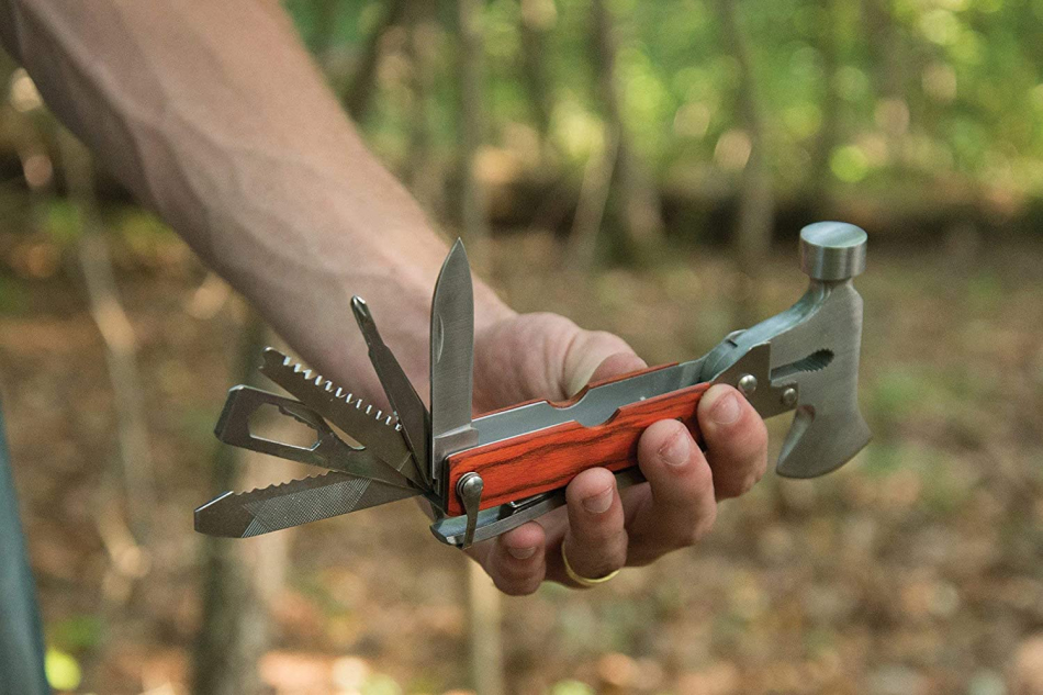 En fantastisk gåva för äventyrssökare: Om du letar efter en speciell present till dina nära och kära som gillar att utforska, camping, jakt, vandring, fiske eller backpacking, så är vår Multitool Hatchet ett perfekt val!