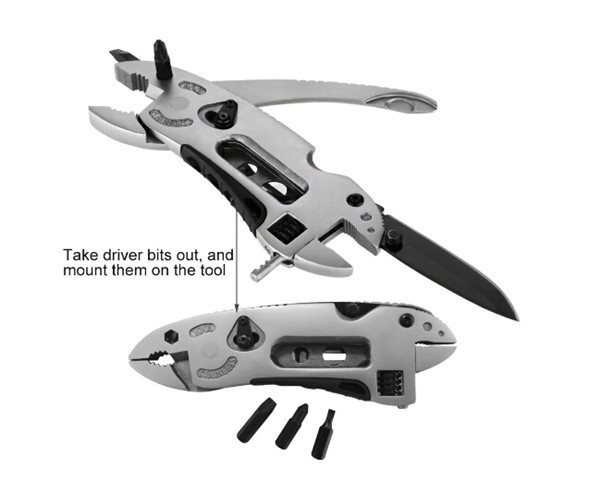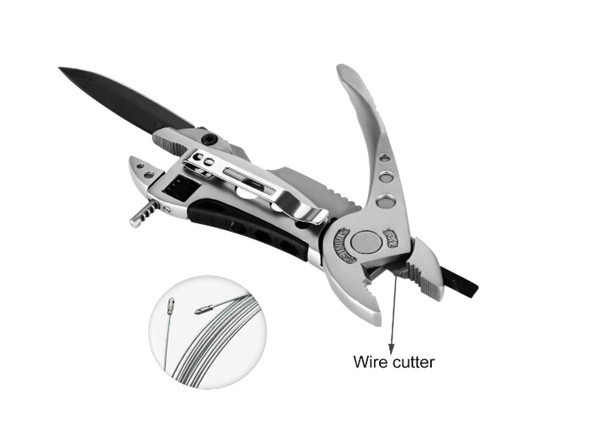 – Mångsidig och multifunktionell deisgn med justerbar skiftnyckel, tång, trådkniv och skruvmejsel.