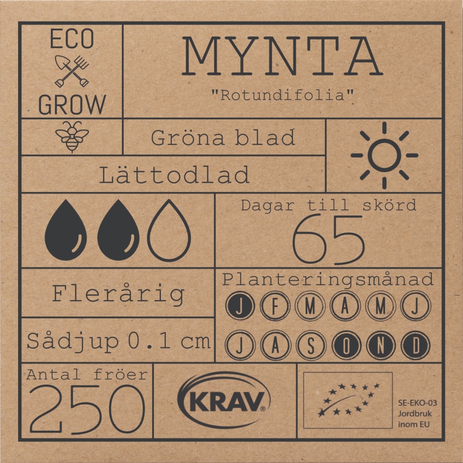 Ekologisk certifiering - Fröna är ekologiska, innehåller inga genmodifierade substanser (GMO) och dessutom har inga artificiella bekämpningsmedel eller kemikalier använts vid framtagning av fröna.