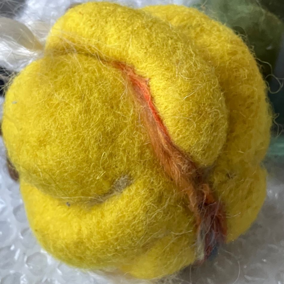 Nålfiltad pumpa i helt egen design av Nettans Ullisar. Denna pumpa är helt igenom nåltovad av ull. Färg gul. Finns endast i ett exemplar. Perfekt att ha som nåldyna eller om du så vill - ha stående på en hylla eller som fin dekoration i ett fönster. Den väger cirka 38 gr och är cirka 13 cm hög. Nästan 10 cm bred. Perfekt som en unik handgjord present eller julklapp till någon som tycker om att sy.