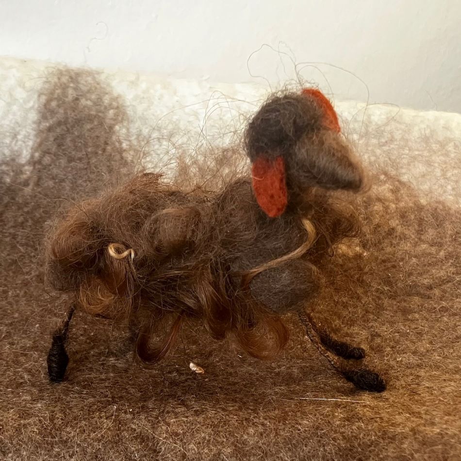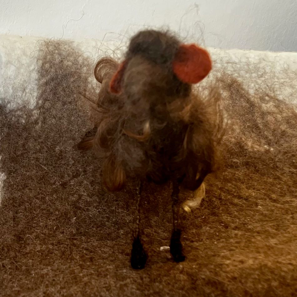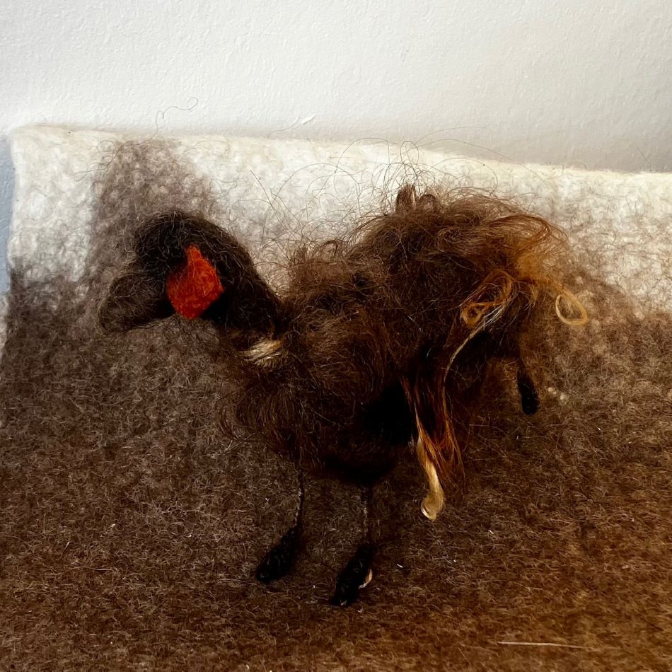 Handgjord nåltovat får på en stomme av ståltråd. Lockarna är bruna av värmlandsfår. Minifåret väger från 7 gram och är cirka 5 -7 cm hög och lång. Egen design av @nettansullisar varje får blir en unik individ. Öronen är våttovade.