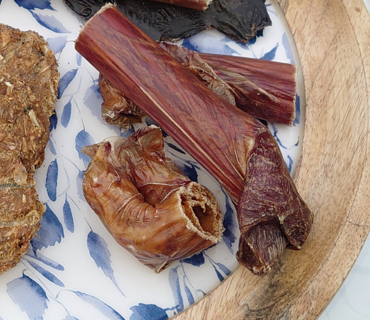 Att tänka på: Lämna inte hunden utan uppsikt när det tuggas, och servera alltid friskt vatten. Ge om möjligt begränsad mängd till en början för att kontrollera reaktioner på mage/tarm.