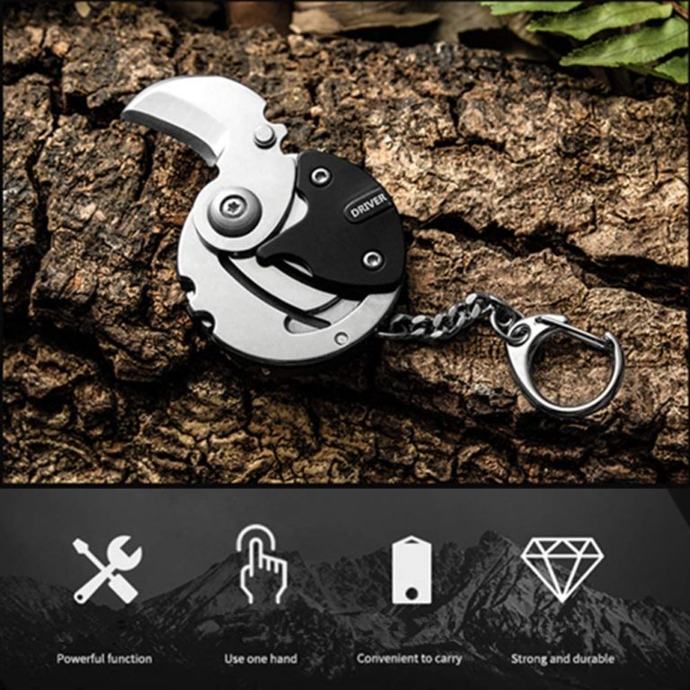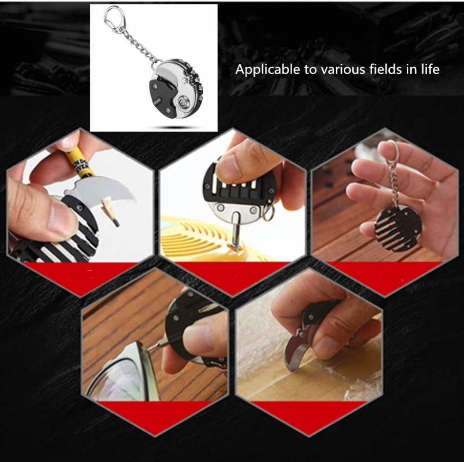 Kompakt men användbar】 Detta är en multifunktionell fickkniv som är kompakt och lätt för enkel användning när du är på språng samtidigt som den är väldigt användbar för alla användningsändamål. Det finns en kedja fäst i botten för att hänga på din nyckelring som en nyckelkniv, halskniv, handväska eller ficka . Ett användbart verktyg som kan användas i stor utsträckning när du är utomhus.