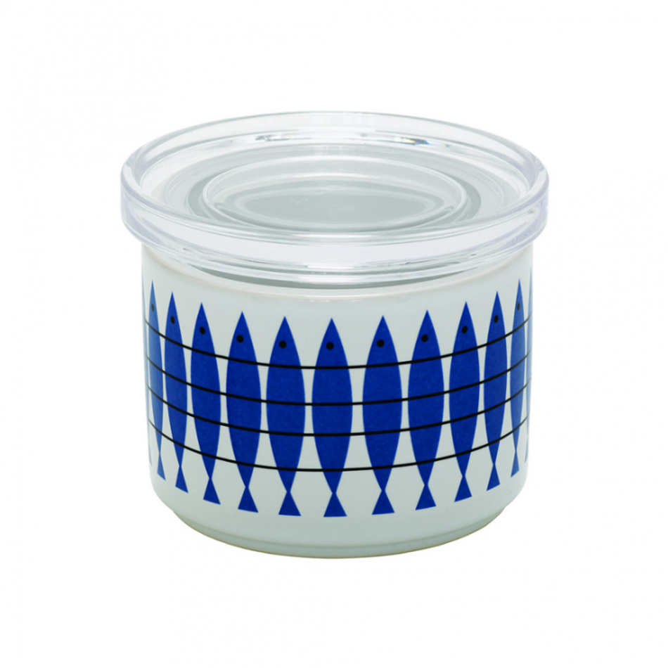 Sill, porslinsburk m lock, blå. Designer Marianne Nilsson