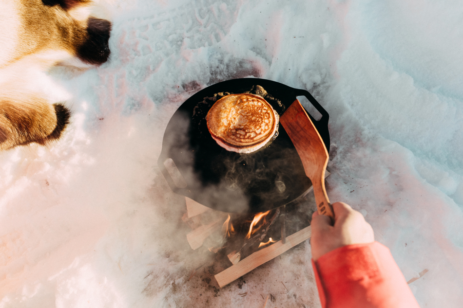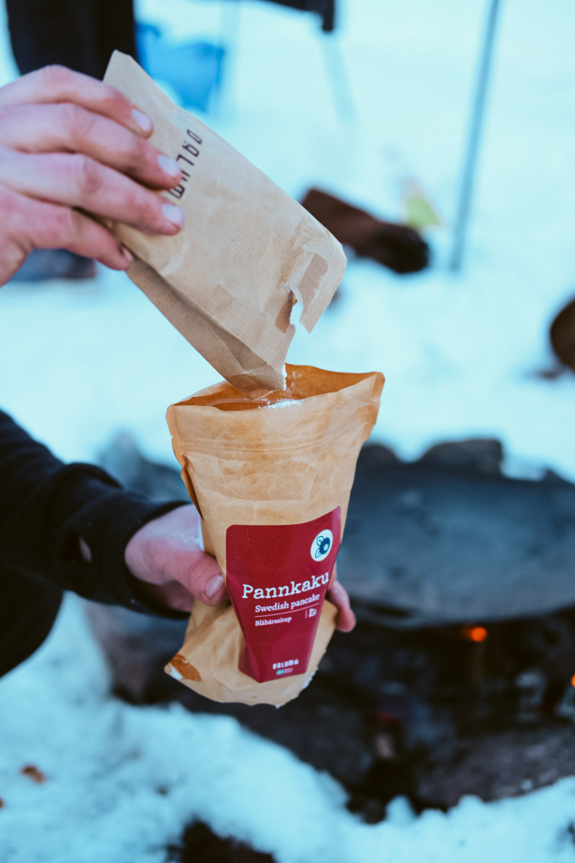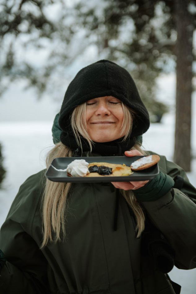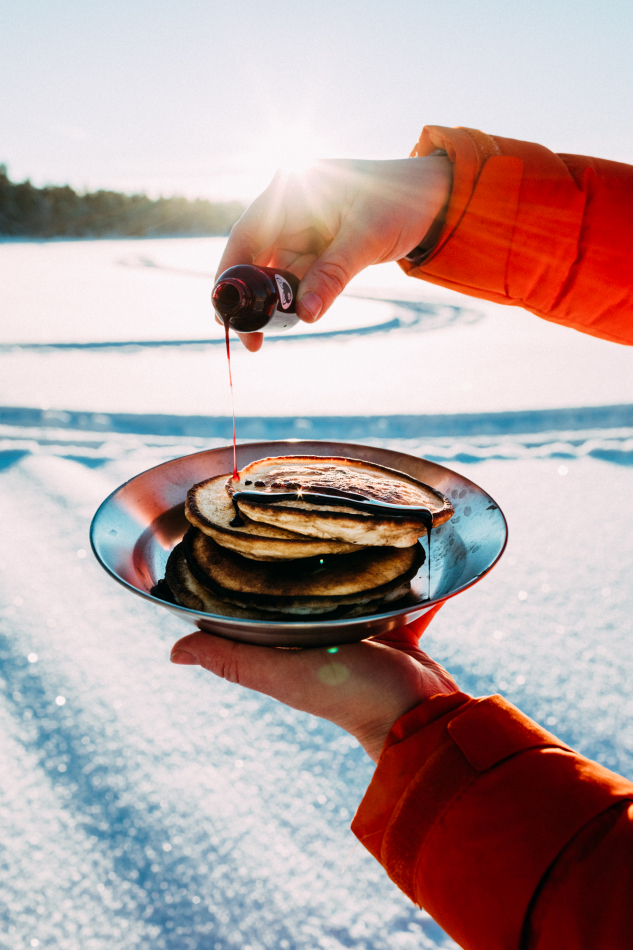 Välj mellan Pannkaku med smaksatt mix eller Pannkaku med en flaska sirap (blåbärssirap, hjortronsirap eller granskottsirap)
