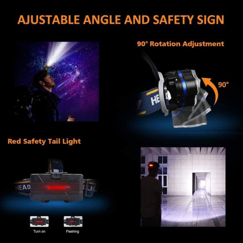 【IPX4 vattentät och lång livslängd】 LED-huvudficklampan är IPX4 vattentät och kan ge den vattentät. LED-lamporna har så lång livslängd att du aldrig ska behöva byta dem.