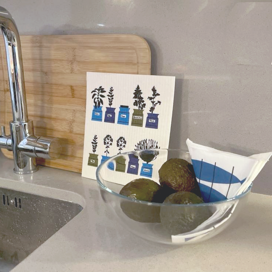 Mönstret är Persons Kryddskåp, designades av Astrid Sampe för Linnelinnen i mitten av 1950-talet. Disktrasan är tillverkad i Sverige och miljömärkt.