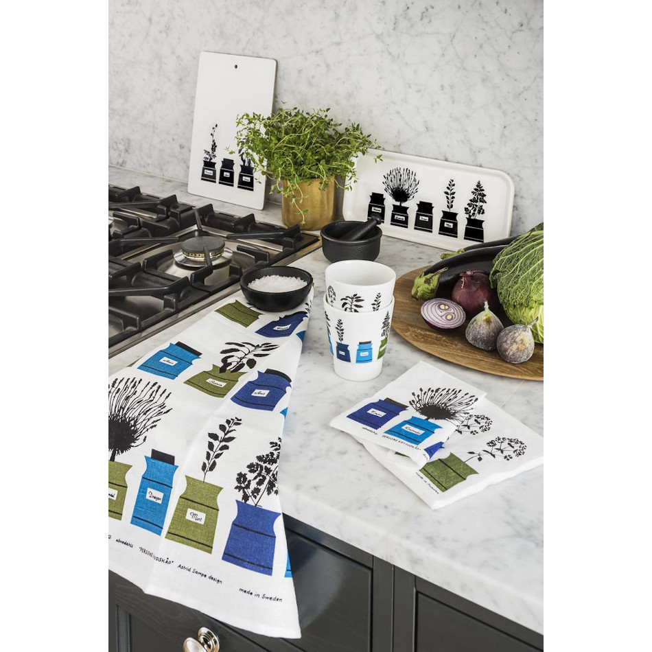 Astrid Sampe är en svensk designer som studerade på Konstfack i Stockholm och Royal College of Art i London. På Helsingborgsutställningen 1955, presenterades Linnelinjen, en revolution av det svenska linneskåpet initierad och skapad av Astrid Sampe och Marianne Nilsson för Almedahls fabriker. Nya format, mönster och dessutom färg på lakan, servetter och kökshanddukar lanserades. Ett av mönstren var Persons Kryddskåp som blivit ett av våra mest älskade mönster.