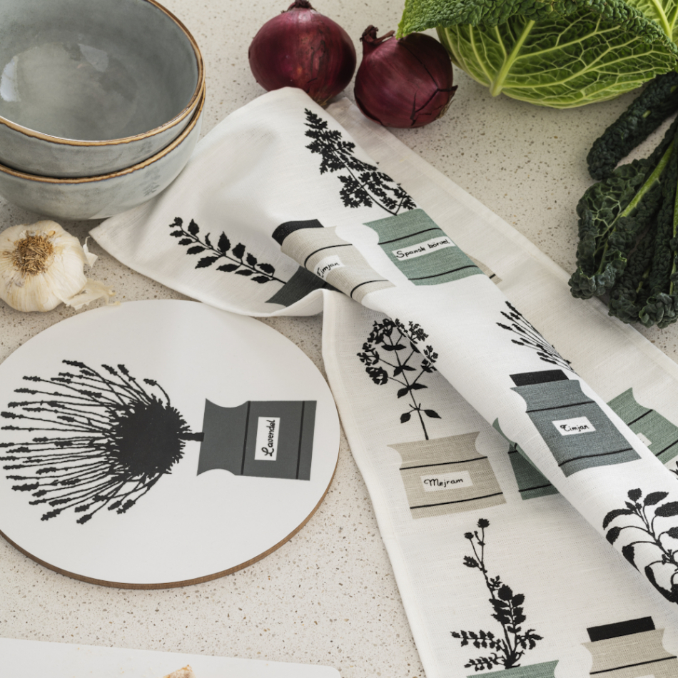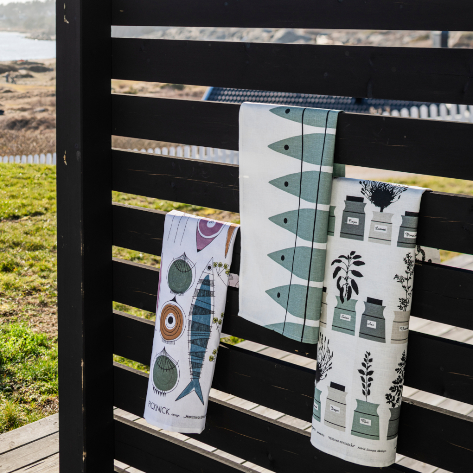 Astrid Sampe är en svensk designer som studerade på Konstfack i Stockholm och Royal College of Art i London. På Helsingborgsutställningen 1955, presenterades Linnelinjen, en revolution av det svenska linneskåpet initierad och skapad av Astrid Sampe och Marianne Nilsson för Almedahls fabriker. Nya format, mönster och dessutom färg på lakan, servetter och kökshanddukar lanserades. Ett av mönstren var Persons Kryddskåp som blivit ett av våra mest älskade mönster.