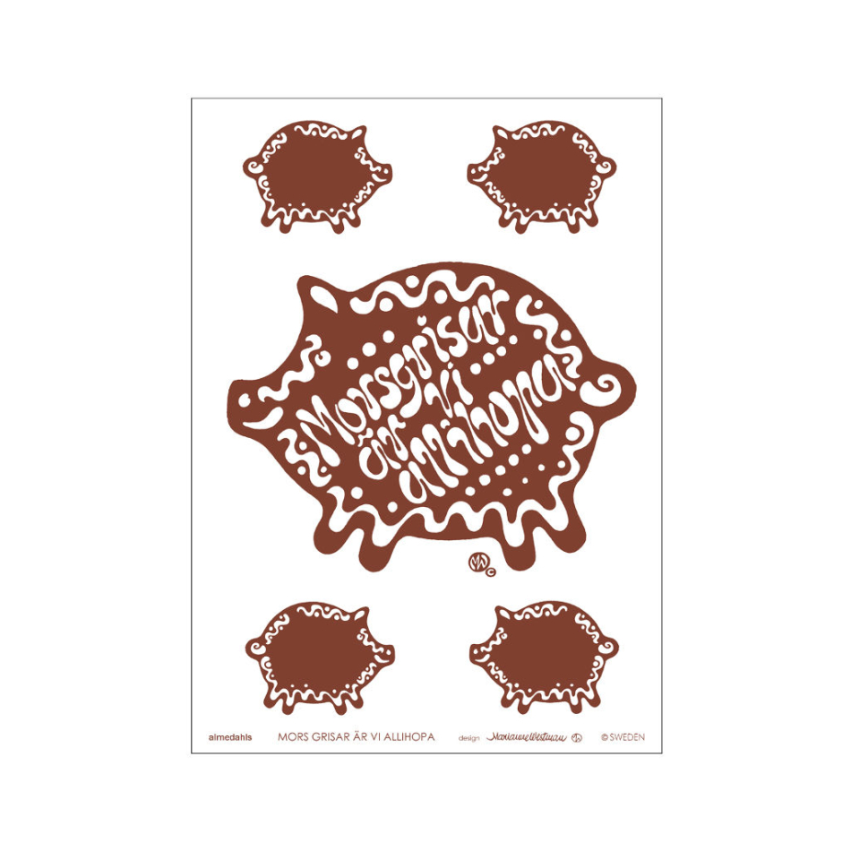 Glada julhandduken Morsgrisar är vi allihopa är designad av Marianne Westman, en av våra största designers under 1950-talet