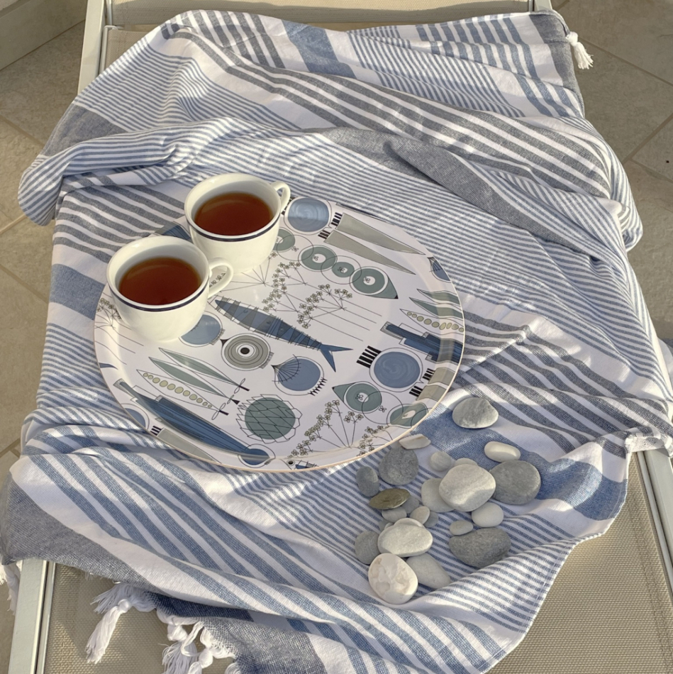 Vid vattnet hittar vi blå och beige toner i en härlig mix som inspirerat oss att skapa en längtansfull västkust-känsla. Duka upp en inbjudande och ombonad sommarkänsla med Picknick blå beige milda toner.